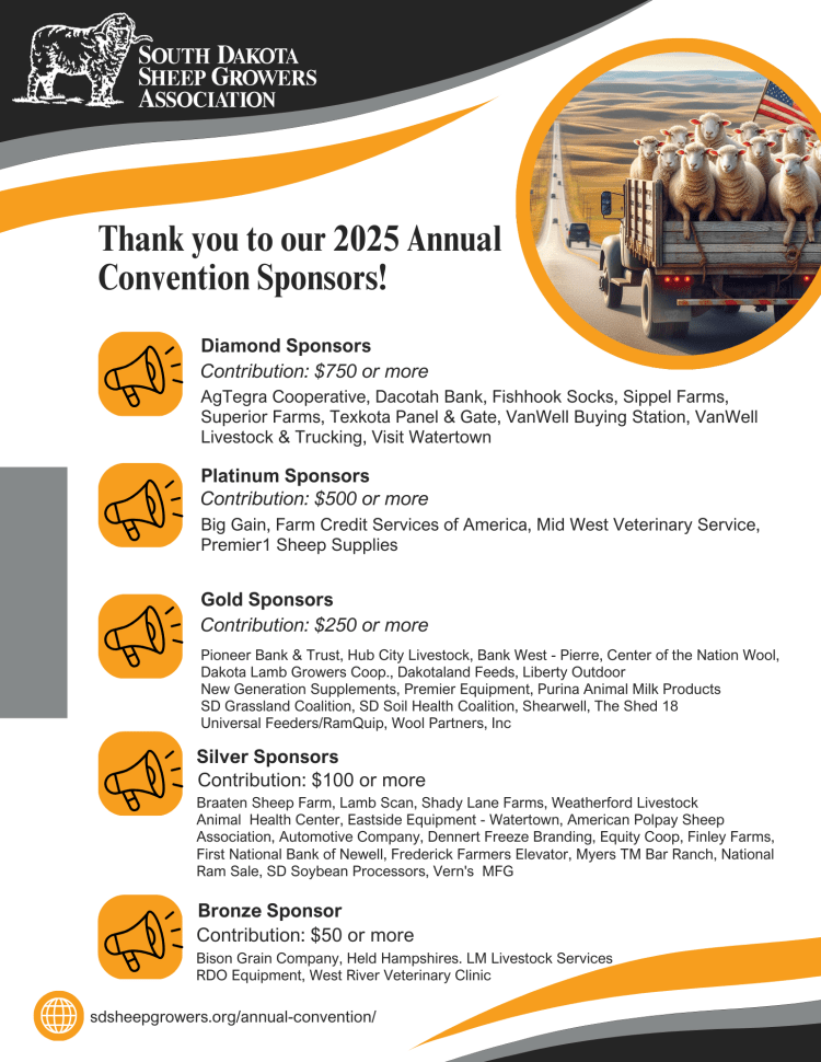Greetings SD Sheep Growers Supporters,